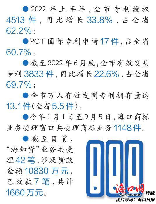 原標題:海口多舉措打造知識產權服務新高地,今年上半年全市專利授權同比增長33.8%——建好從“創新”通往“市場”的橋梁