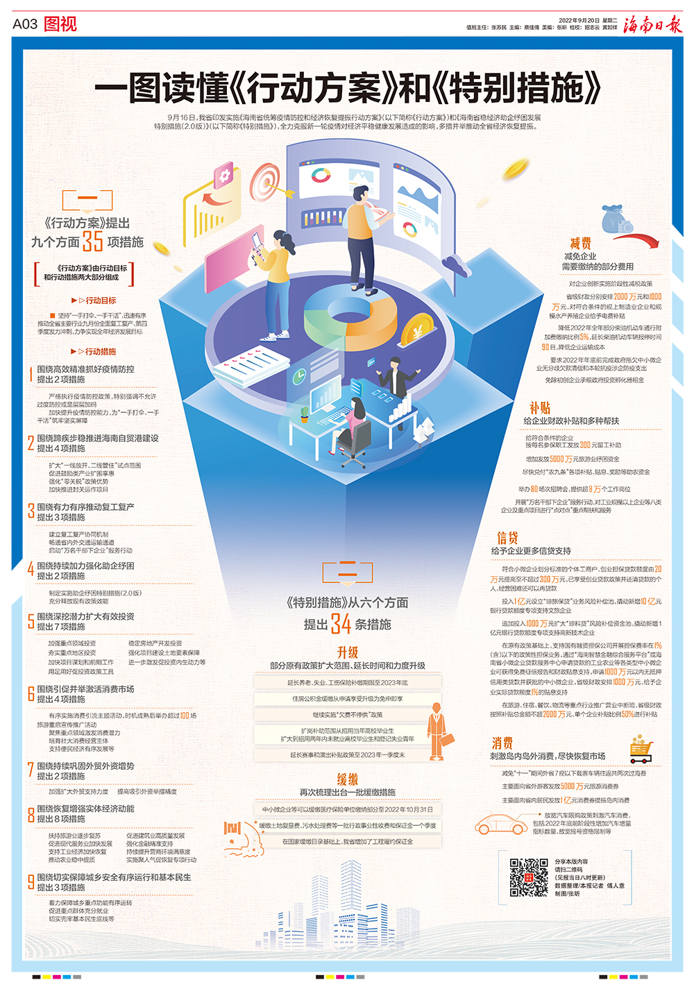 9月16日,我省印發(fā)實施《海南省統(tǒng)籌疫情防控和經(jīng)濟恢復提振行動方案》(以下簡稱《行動方案》)和《海南省穩(wěn)經(jīng)濟助企紓困發(fā)展特別措施(2.0版)》(以下簡稱《特別措施》),全力克服新一輪疫情對經(jīng)濟平穩(wěn)健康發(fā)展造成的影響,多措并舉推動全省經(jīng)濟恢復提振。