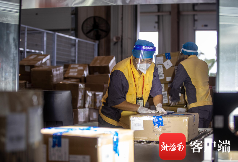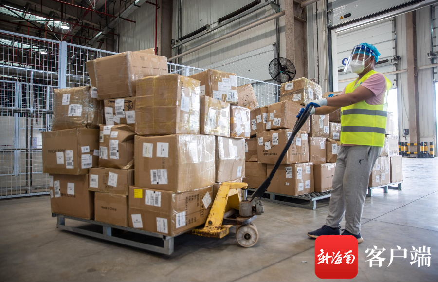 海口美蘭機場跨境電商“9710”出口業務正式開通。記者 劉洋攝