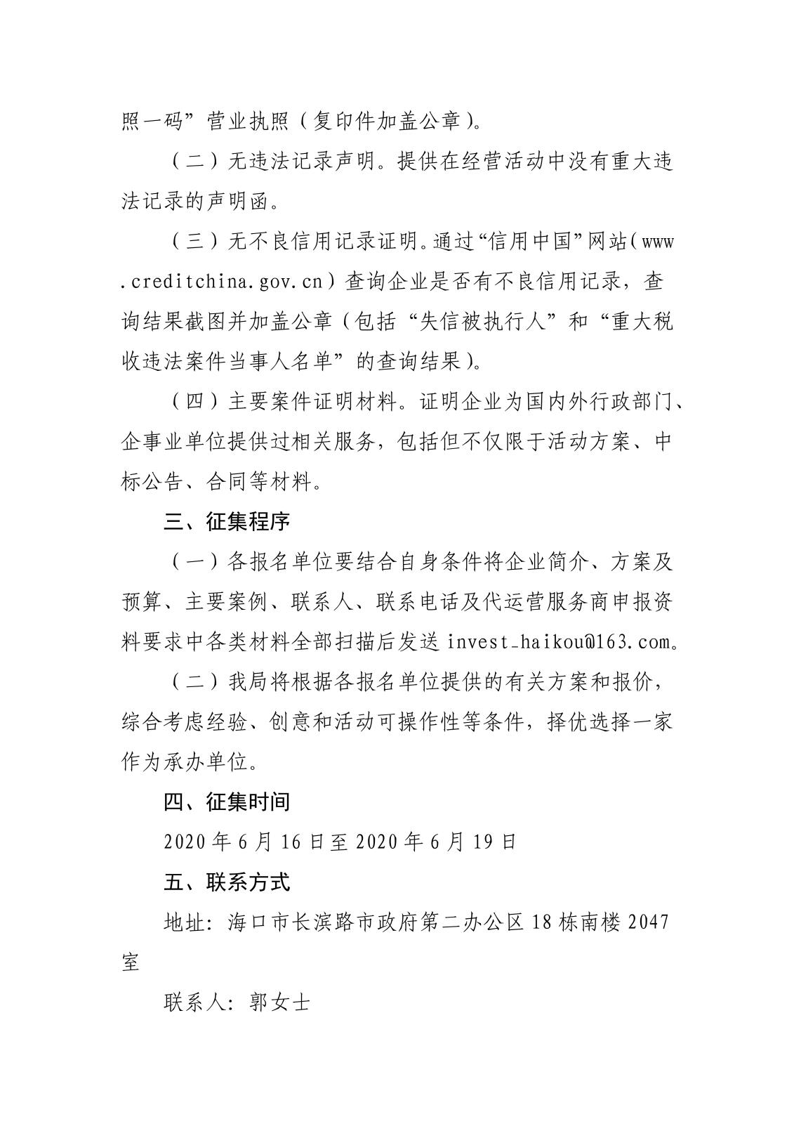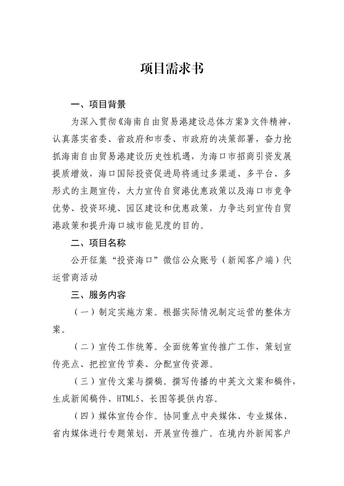 上一篇:海口國際投資促進局關于公開征集“投資海口”短視頻代運營服務商的公告