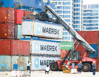海南自貿港免稅商品在海口港集裝箱碼頭完成卸貨,并順利通過海口港海關查驗后放行。