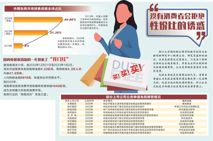 近期防疫政策放松,疊加冬季旅游旺季到來,海南離島免稅市場(chǎng)更是成為了冬日里的“一把火”。據(jù)海南海關(guān)介紹,自2022年12月31日至2023年1月2日,海關(guān)共監(jiān)管離島免稅購物金額4.22億元、購物旅客4.3萬人次、件數(shù)47.6萬件。人均購物金額9816元,恢復(fù)到去年同期水平。“防疫政策放開后,企業(yè)預(yù)期未來旅游業(yè)會(huì)振興,而旅游業(yè)這幾年最火的就是免稅店,所以不少企業(yè)都想趕上疫后報(bào)復(fù)性消費(fèi)的浪潮。”浙江大學(xué)國際聯(lián)合商學(xué)院數(shù)字經(jīng)濟(jì)與金融創(chuàng)新研究中心聯(lián)席主任、研究員盤和林對(duì)記者分析,免稅店這個(gè)商業(yè)業(yè)態(tài),是這幾年旅游和商業(yè)結(jié)合最火爆的一個(gè)概念,這個(gè)概念在疫后有望得到進(jìn)一步強(qiáng)化。