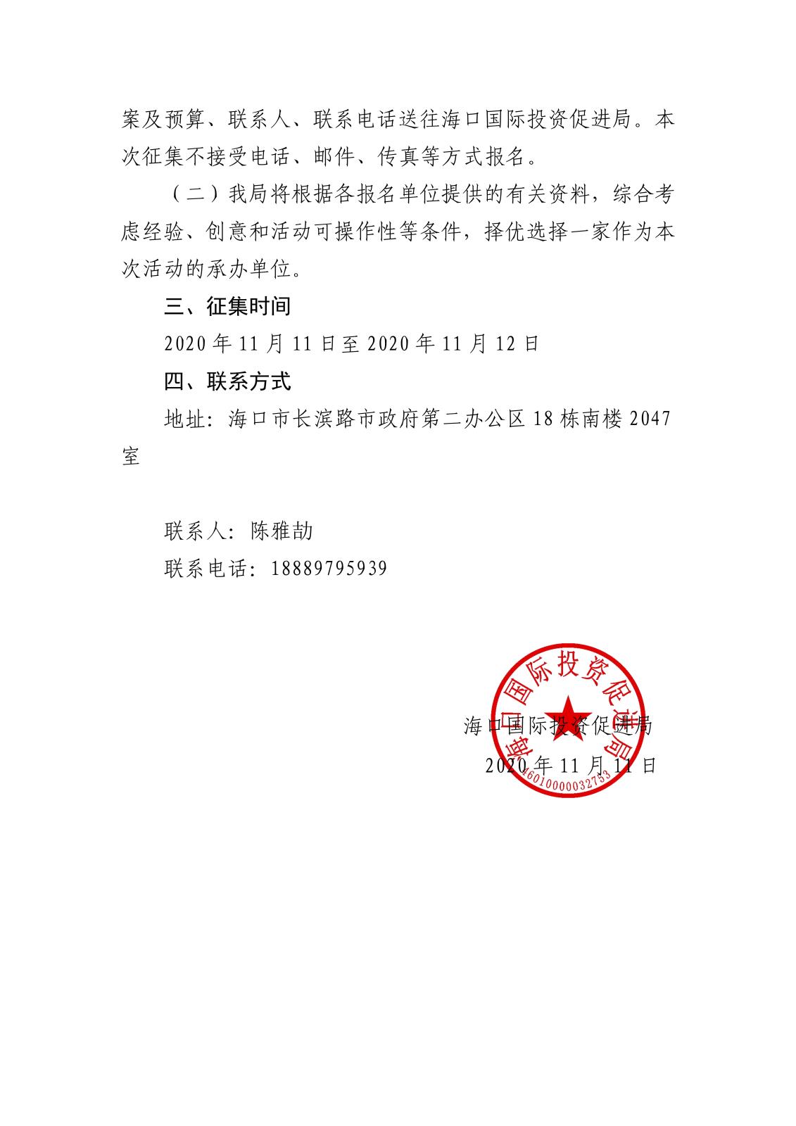 上一篇:海口國(guó)際投資促進(jìn)局關(guān)于公開征集招商活動(dòng)承辦單位的公告