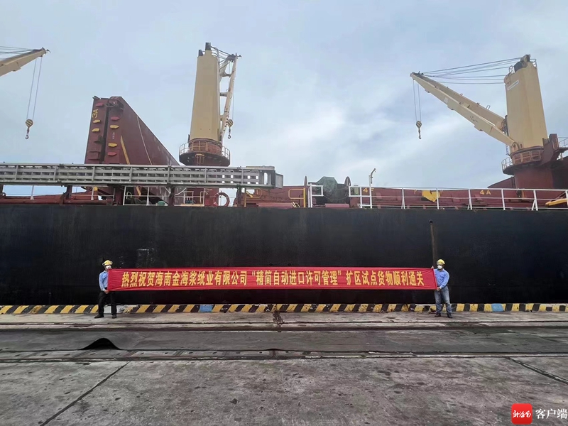 “精簡自動進口許可管理”首單貨物順利報關。金海漿紙業供圖