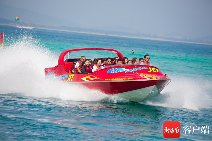 資料圖:游客在蜈支洲島旅游區體驗動感飛艇。蜈支洲島旅游區供圖