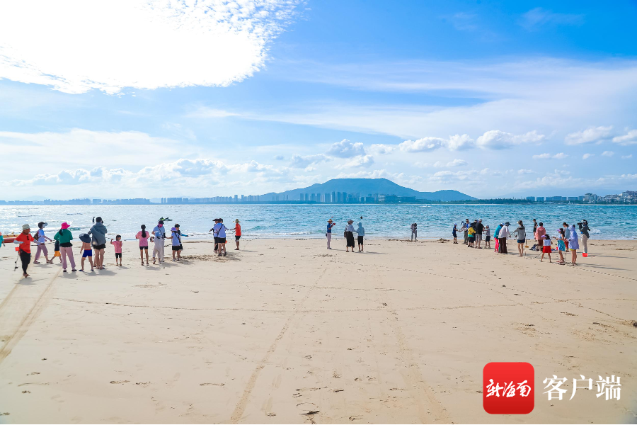 資料圖:游客在南灣猴島生態旅游區體驗拉網捕魚。南灣猴島生態旅游區供圖
