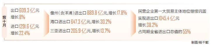 原標題:前10月海南外貿(mào)超1900億元 同比增長17.4%