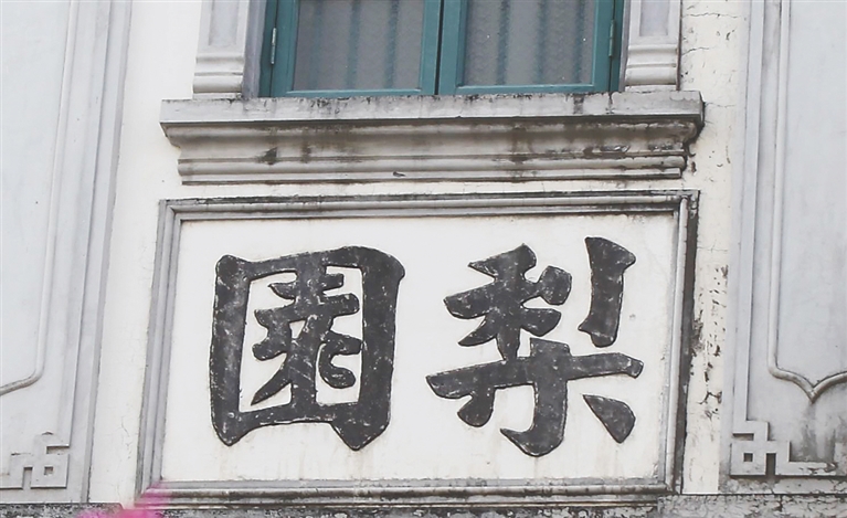 中山路上騎樓建筑數量眾多,臨街商鋪林立。民國時期,這一帶是我國最南端的重要通商口岸。這里除了商鋪,街上還有郵局、銀行、酒店、戲院、公司、會館等,是一個比較成熟的商業區。“中央銀行”“交通銀行”“中南行”“平安銀行”“梨園”“五邑會館”“五峰莊”等牌匾就是歷史的見證。幾家銀行都是楷書題匾,端正規整。“梨園”是用石灰塑成的牌匾,白墻黑字,特別醒目。二字筆力沉雄,結構穩健,是顏真卿書法風格。“五邑會館”是在石灰墻面上陽刻而成,也是顏體楷書風格,結字勻稱大方,字里行間見英風豪氣,穩健之中見灑脫。“五峰莊”三字是楷書灰塑,用筆厚重,以中鋒為主,圓潤遒麗,結體落落大方,自帶一股風雅氣息。