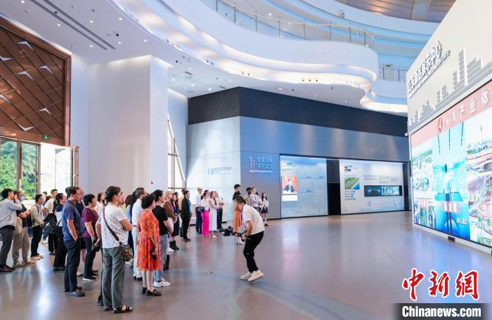 11月27日,“開放·向未來——全國外宣媒體記者、海外傳播官、外籍網絡大V看海南”活動在海口啟動。圖為采訪團成員探訪海口江東新區。海南國際傳播中心供圖