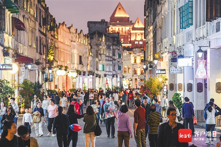 眾多游客打卡海口騎樓老街。阮琛 攝
