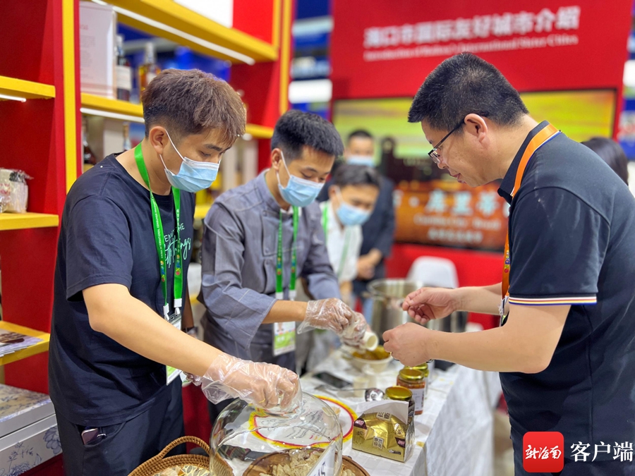 今年首次參展,徐文婧帶來了海南工廠2月份首批生產(chǎn)的夜來香咖喱醬、南洋雞飯辣椒醬、海南黃燈籠辣椒醬,備受消費者喜歡。在展區(qū),每當(dāng)有參觀者前來,工作人員從冒著熱氣的鍋里,用紙杯盛出一份咖喱醬,再放入幾塊面包片,蘸著咖喱醬吃,參觀者品嘗后紛紛點贊。
