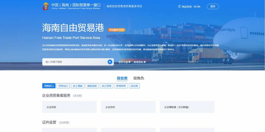 除加工增值服務等自貿港特色業務外,海南自由貿易港貿易服務專區還集成了中國(海南)國際貿易“單一窗口”上的25大類154個貿易業務功能。通過打通用戶認證體系,中國(海南)國際貿易“單一窗口”用戶只需一次登錄,即可直接辦理海南自由貿易港貿易服務專區所有業務以及“海易辦”平臺上原有的4300余項政務服務。
