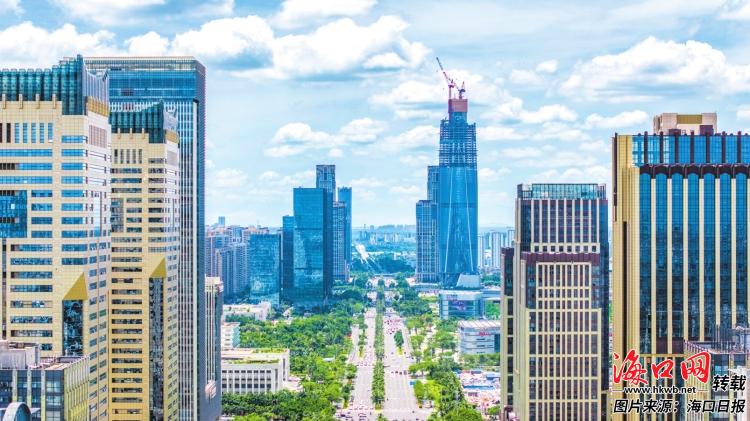 在海口國興大道CBD(中央商務(wù)區(qū)),海口中交國際中心、全球貿(mào)易之窗、海南大廈等商務(wù)樓宇林立,產(chǎn)業(yè)集聚度高。記者楊鶴攝