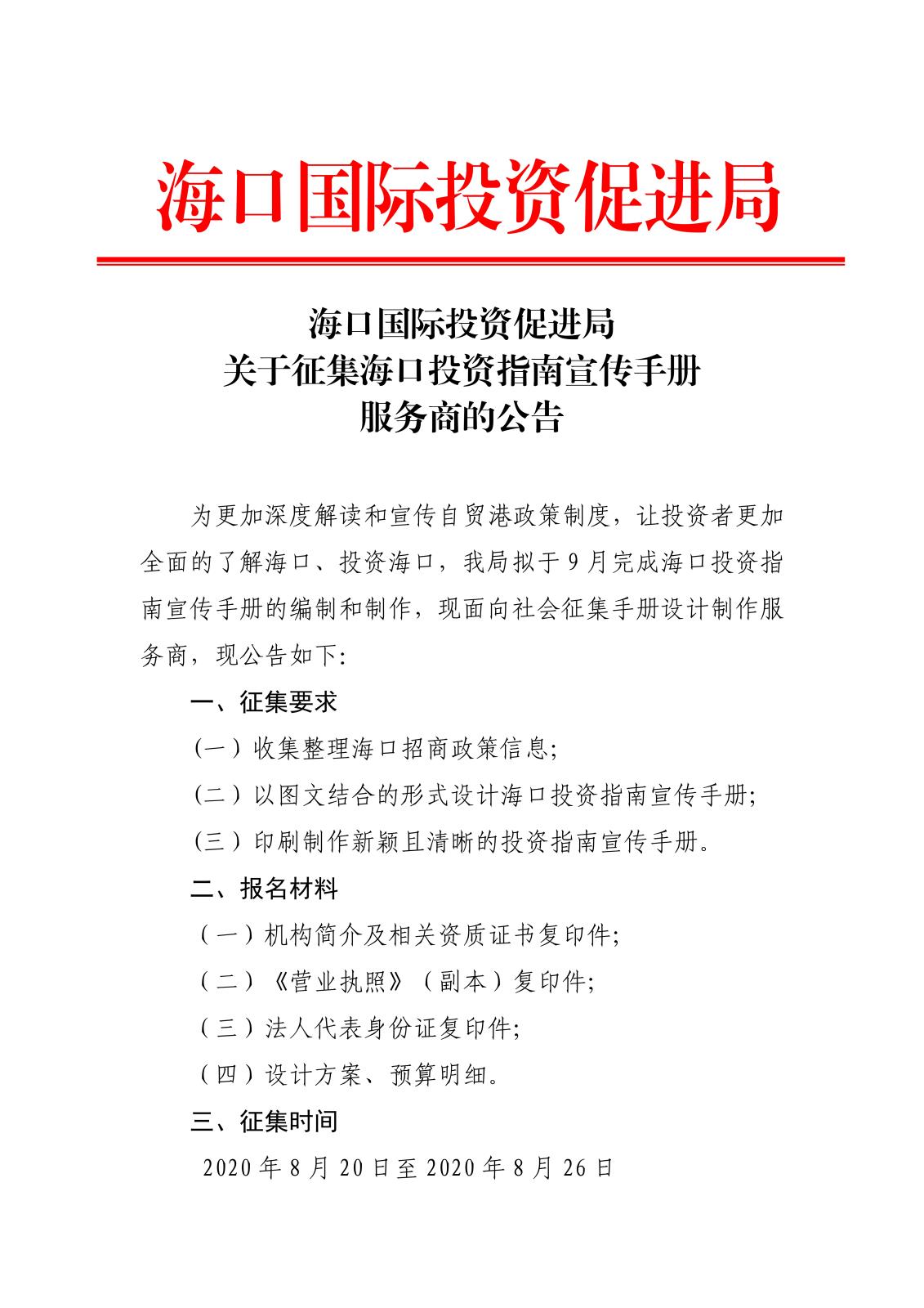 下一篇:海口國際投資促進局關于公開征集海口市招商推介活動(上海、深圳專場)會務服務承辦單位的公